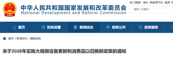 近日,国家发展改革委、财政部发布《关于2026年实施大规模设备更新和消费品以旧换新政策的通知》。该通知明确,将检验检测领域设备更新纳入2026年大规模设备更新项目支持范围。同时,该通知要求,要加快完善标准体系,对标国际先进水平,提升重点行业节能降碳标准和污染物排放标准。