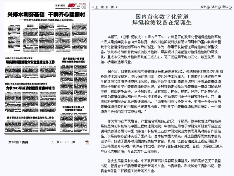 蜀龙网-国内首套数字化管道焊缝检测设备在绵诞生
